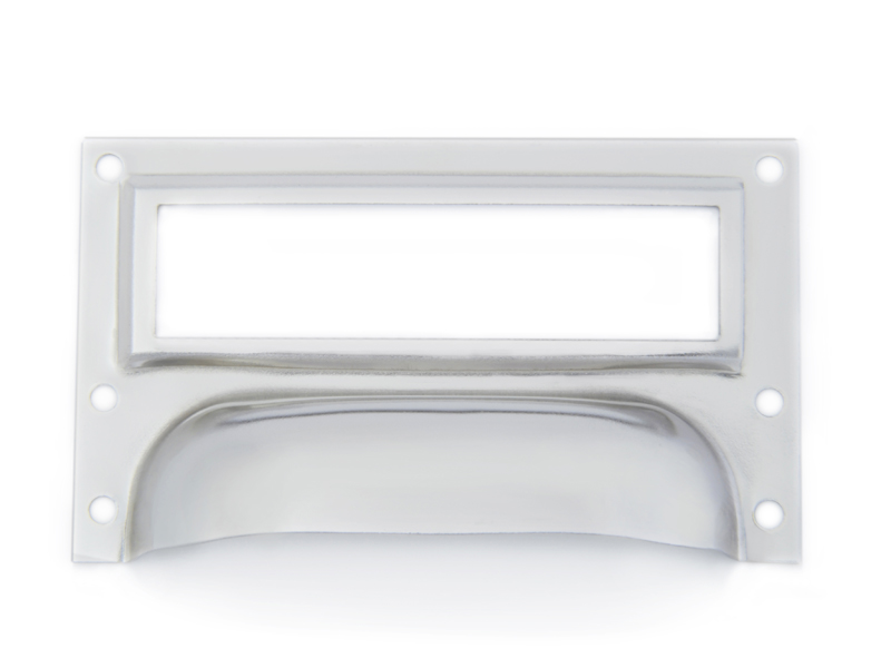 "Muschelgriff mit Etikettenrahmen, vernickel"