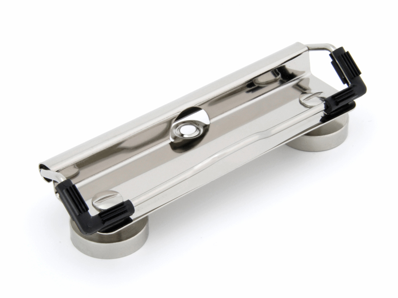Unsere Magnete und Klemmmechaniken sind vernickelt um sie vor Korrosion zu schützen.